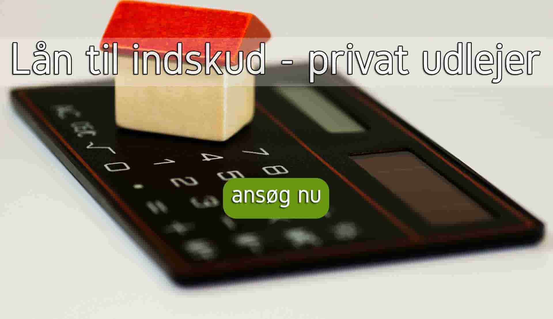 Lån til indskud - privat udlejerLån til indskud privat udlejer. Skal du flytte i ny bolig? Er din nye lejlighed hos en privat udlejer, vil du som regel skulle betale 3 måneders indskud. Har du ikke pengene til dette, er det nødvendigt med et indskudslån. Her kan et hurtig lån komme til hjælp. Lejer du bolig hos en privat udlejer, skal du selv finde pengene til dit indskud. Det vil typisk resultere i et lån, enten i banken eller hos en online låneudbyder. Det er en god idé at undersøge markedet godt, før du vælger at optage et lån.